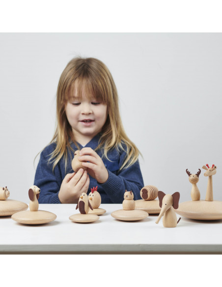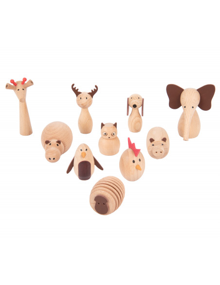 Een feestje om naar te kijken of om mee te spelen, dat is deze 10-delige houten dieren set op het lijf geschreven. De simplistische dieren zijn fantastisch neergezet waardoor iedereen ze, ondanks hun simpele uiterlijk, direct kan herkennen. De dieren zijn subtiel van maat waardoor ze met vrijwel al het speelgoed te combineren zijn.