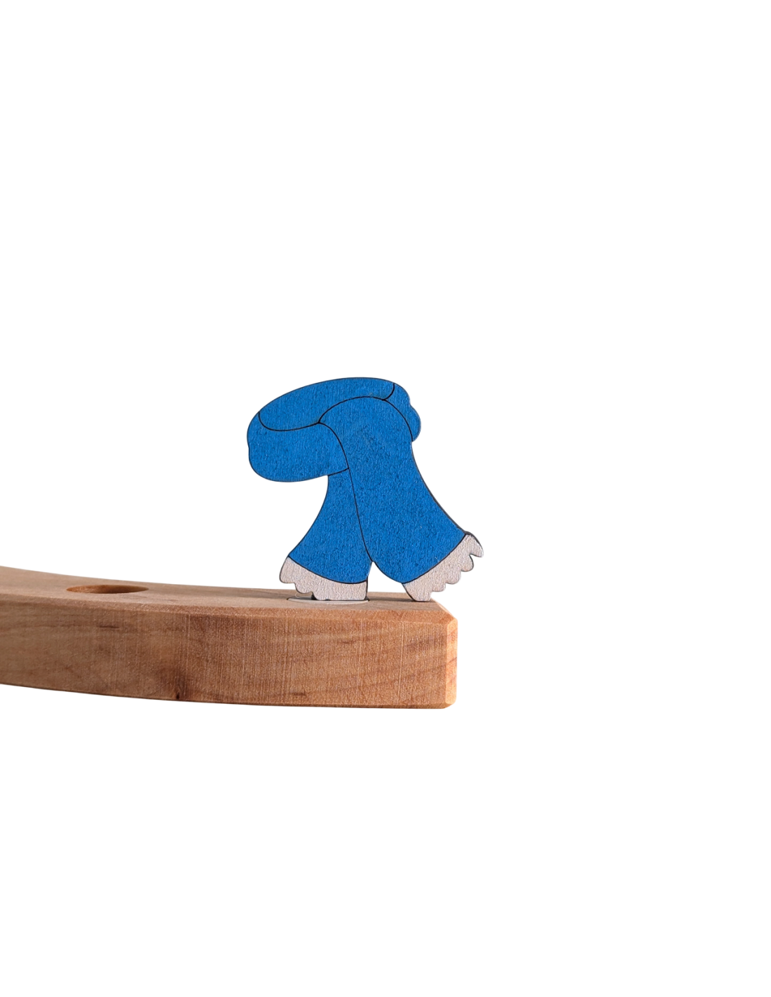 Houten steker voor in de verjaardagsring van bijvoorbeeld Grimm's in de vorm van een sjaal van ons eigen Houtspel merk
