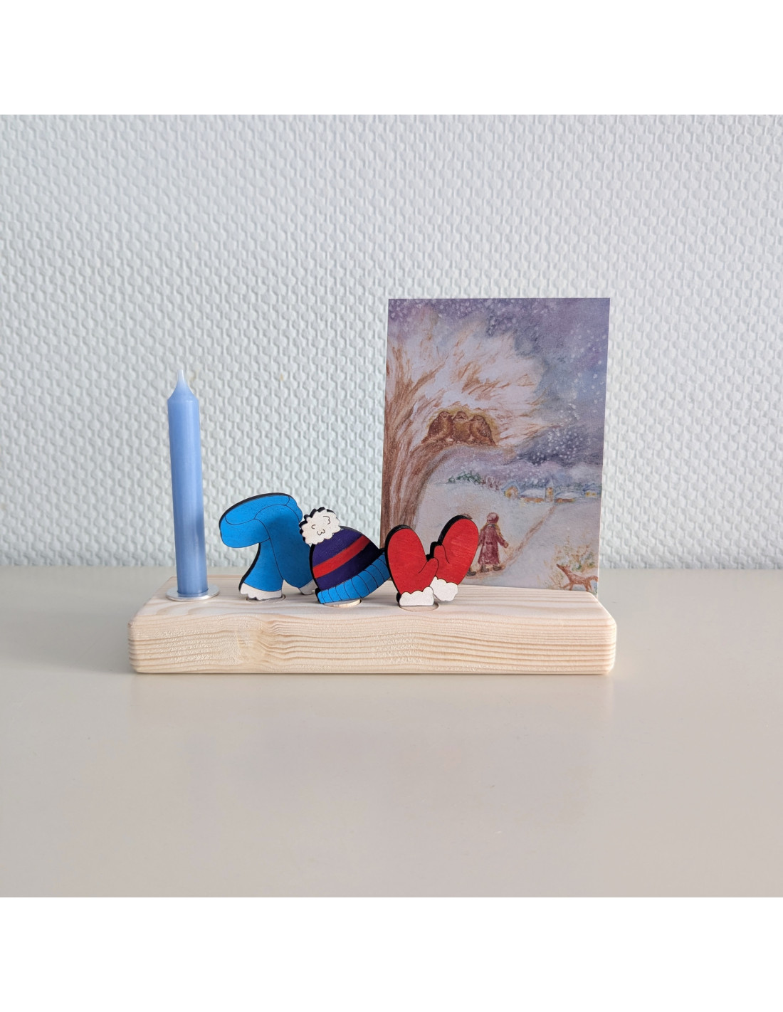 Speciaal voor de winter of voor koukleumen is deze houten steker in de vorm van een sjaal voor in de verjaardagsring. Met zijn blauwe kleur en witte fransjes is het bovendien een heerlijke aanvulling op elke winterse seizoenstafel. De steker past qua maat precies in de verjaardagsringen die wij aanbieden.