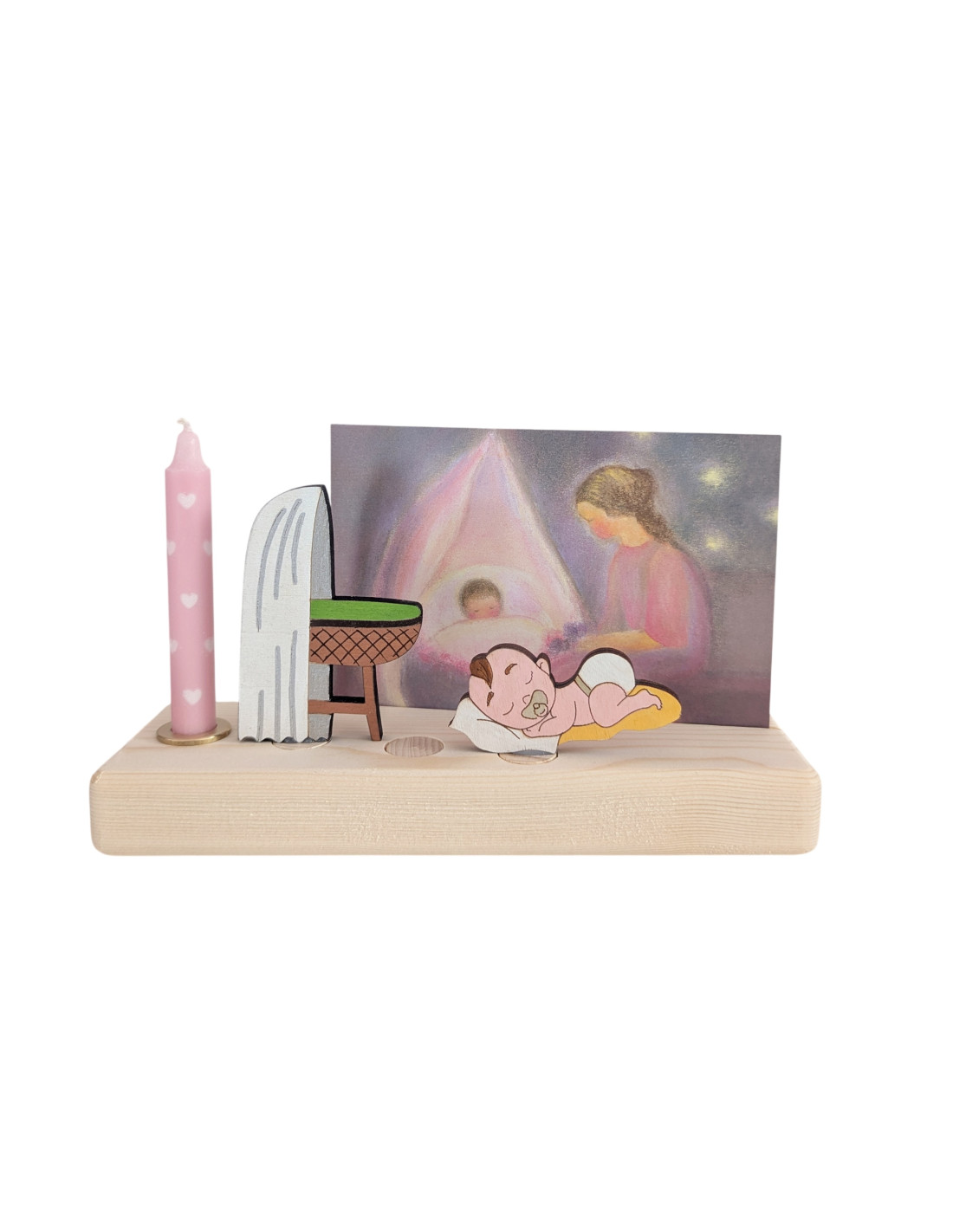 Dit prachtige roze kaarsje is met de hand beschilderd met witte hartjes en past precies in de kaarsenhouder voor de verjaardagsring van bijvoorbeeld Grimm's. Super voor het vieren van bijvoorbeeld verjaardagen.