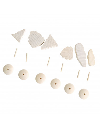 Met deze houten knutselset maak je 6 verschillende houten knutselboompjes op stam. De boompjes zijn gemaakt van onbewerkt hout waardoor ze zelf naar eigen inzicht gekleurd of beschilderd kunnen worden. Een super product om bijvoorbeeld je peg doll wereld mee uit te breiden.