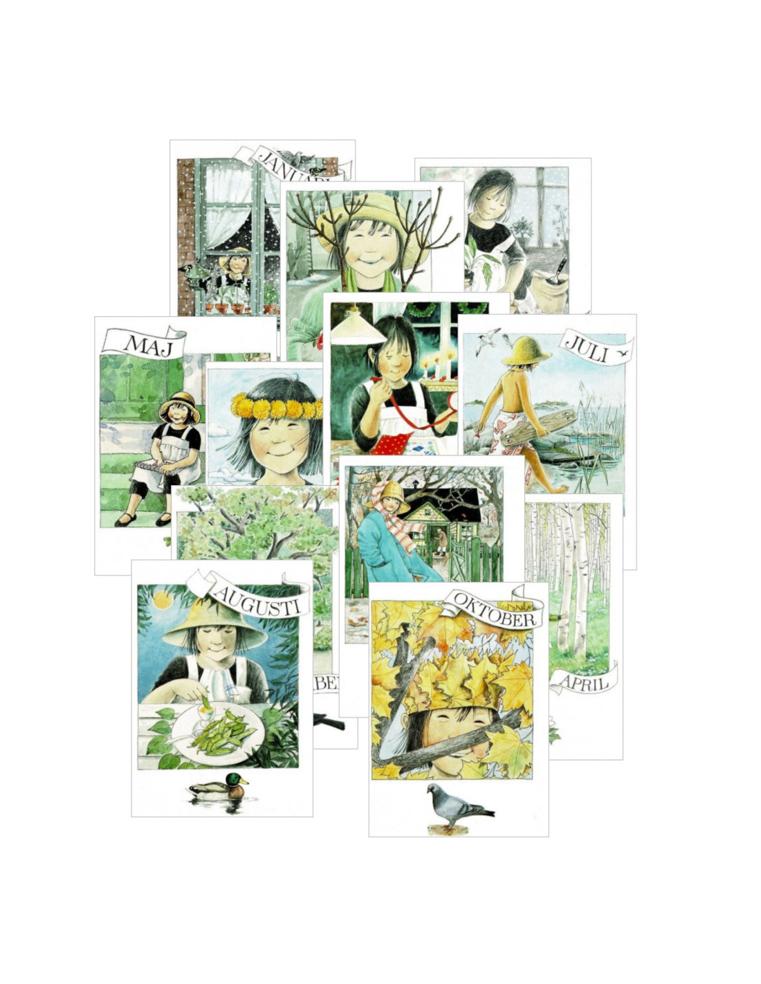 12-delige set met maand ansichtkaarten van Lena Anderson