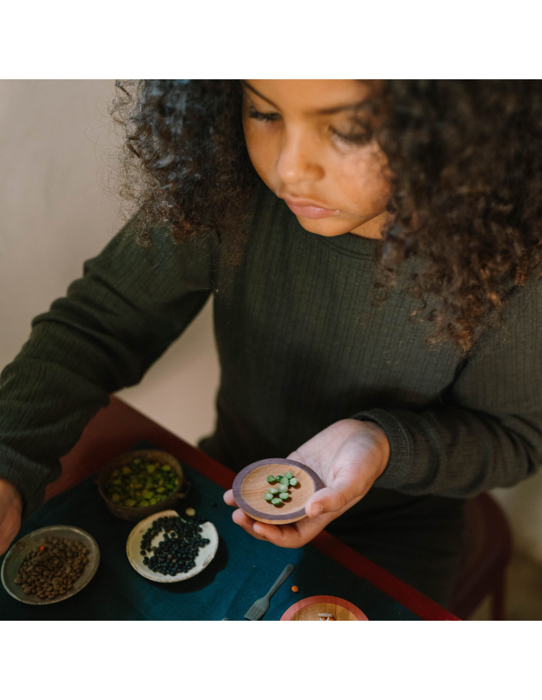 Ideaal om te gebruiken in het creatieve spel, bijvoorbeeld bij restaurantje, vader en moedertje of voor het tonen van de mooiste natuurvondsten zijn deze kleine houten bordjes. De 6 bordjes hebben allen een andere kleur rand en een mini betekening in het midden.