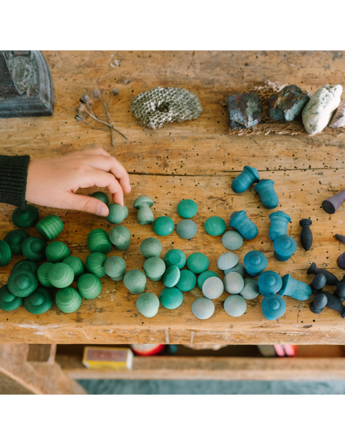Wil jij beginnen met een mandala figuurtjes verzameling om zo je loose parts verzameling aan te vullen? Dan is deze set met 9 verschillende vormen in allen een andere koele kleur precies wat je nodig hebt. Bij de houten figuurtjes zit onder andere een paddestoeltje, een bijenkorf, een tulpje en een kegel. Geschikt voor het maken van de mooiste mandala's of figuren.