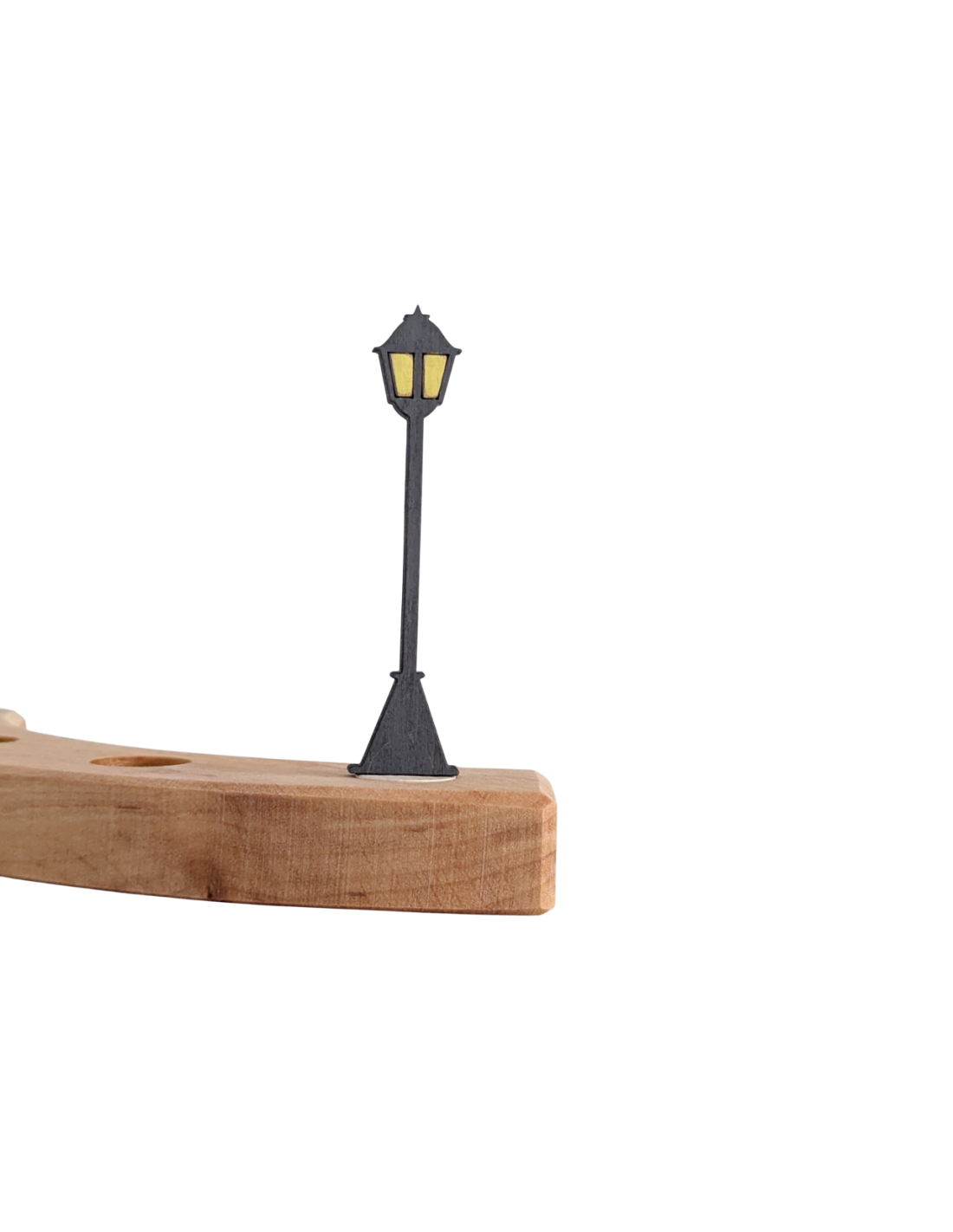 Houten lantaarnpaal steker voor in de verjaardagsring van bijvoorbeeld Grimm's van ons eigen Houtspel merk