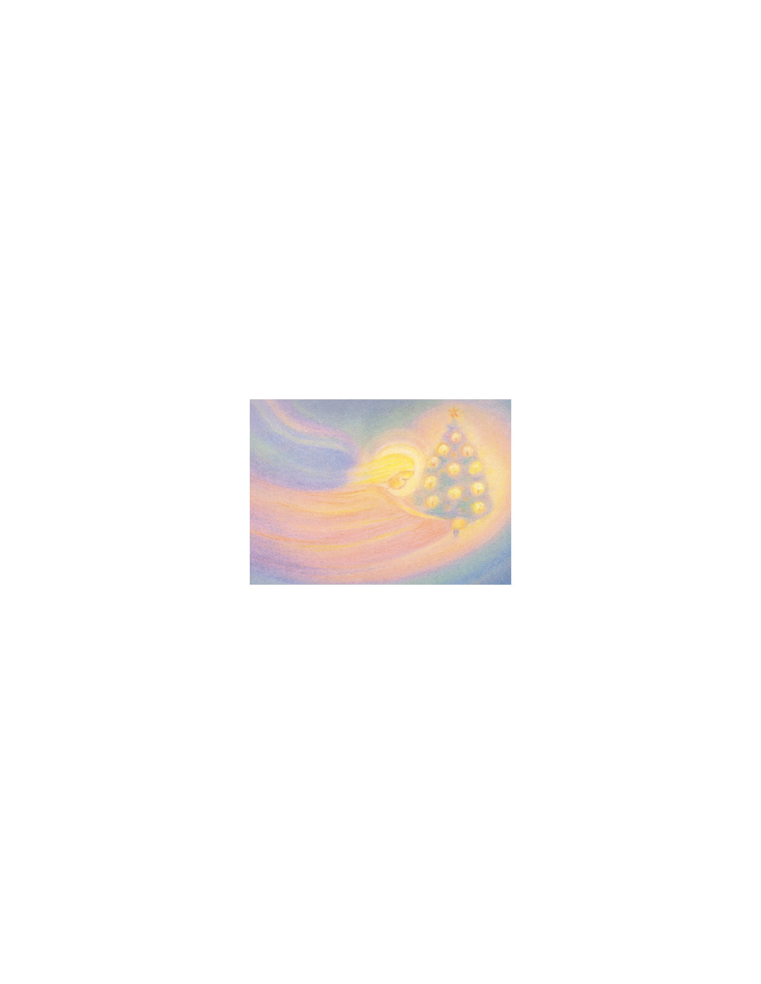 Sfeervolle kerstkaart met een engel die een kerstboom vast heeft van Ruth Elsässer
