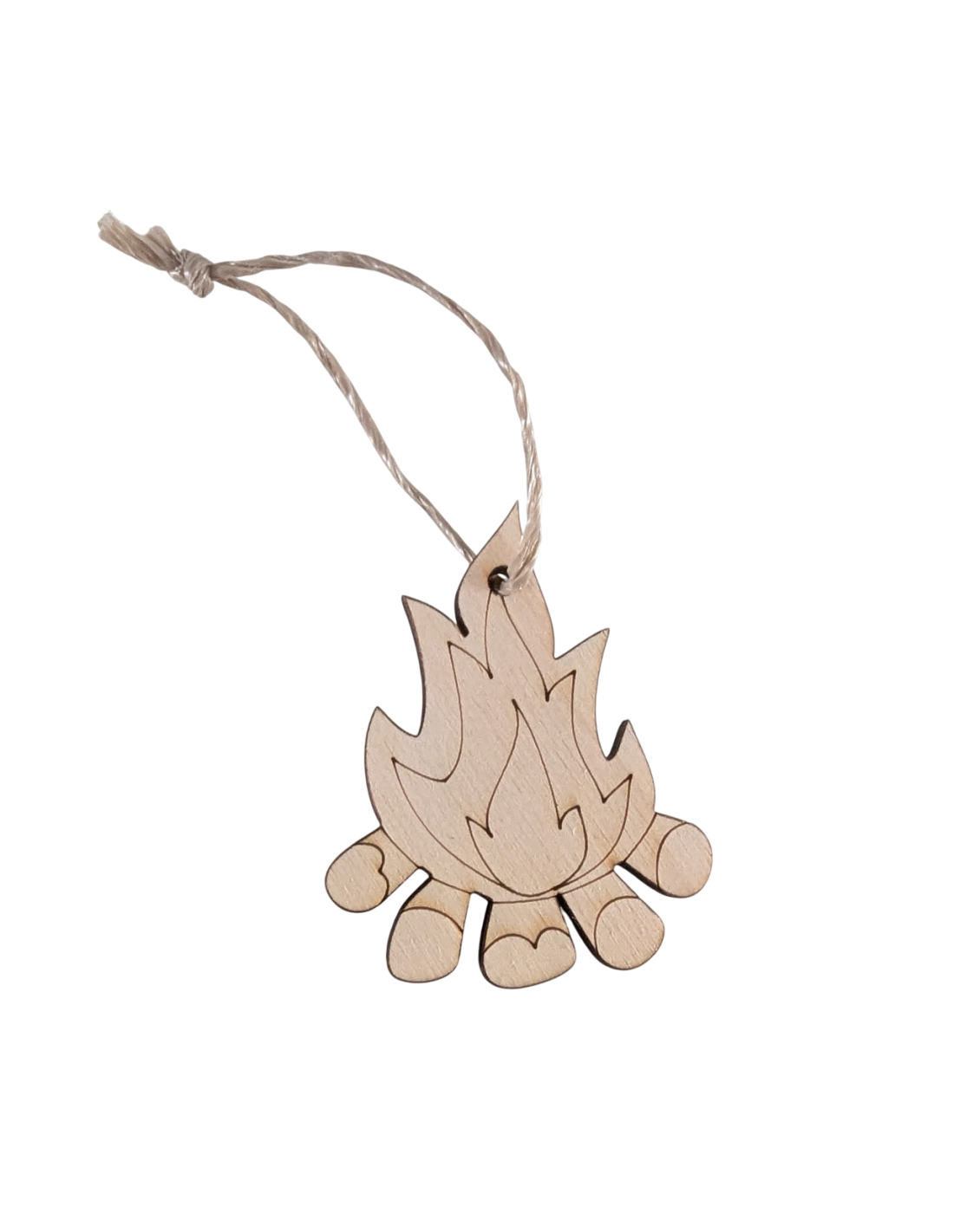 Een leuke houten scouting hanger in de vorm van een kampvuur van ons eigen Houtspel merk