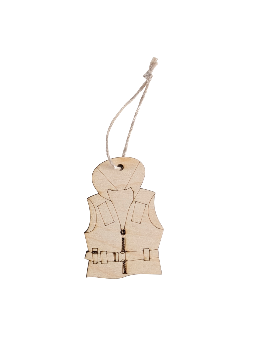 Een leuke houten scouting hanger in de vorm van een reddingsvest van ons eigen Houtspel merk
