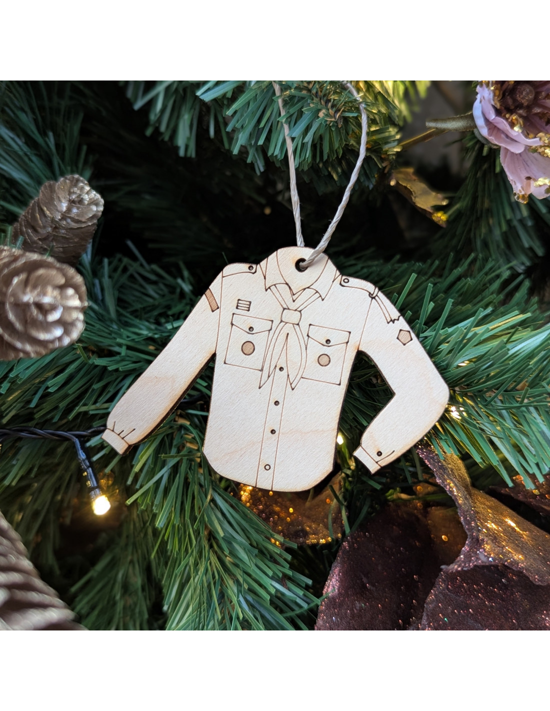 Met de aanschaf van deze leuke houten uniform blouse hanger voor bijvoorbeeld in de kerstboom help jij scouting Hannie Schaft uit Almere naar het grootste Nederlandse waterkamp: het NaWaKa. Houtspel zal namelijk €2,- van de opbrengt van deze hanger schenken aan deze scoutinggroep om een deelname aan dit kamp mogelijk te maken.