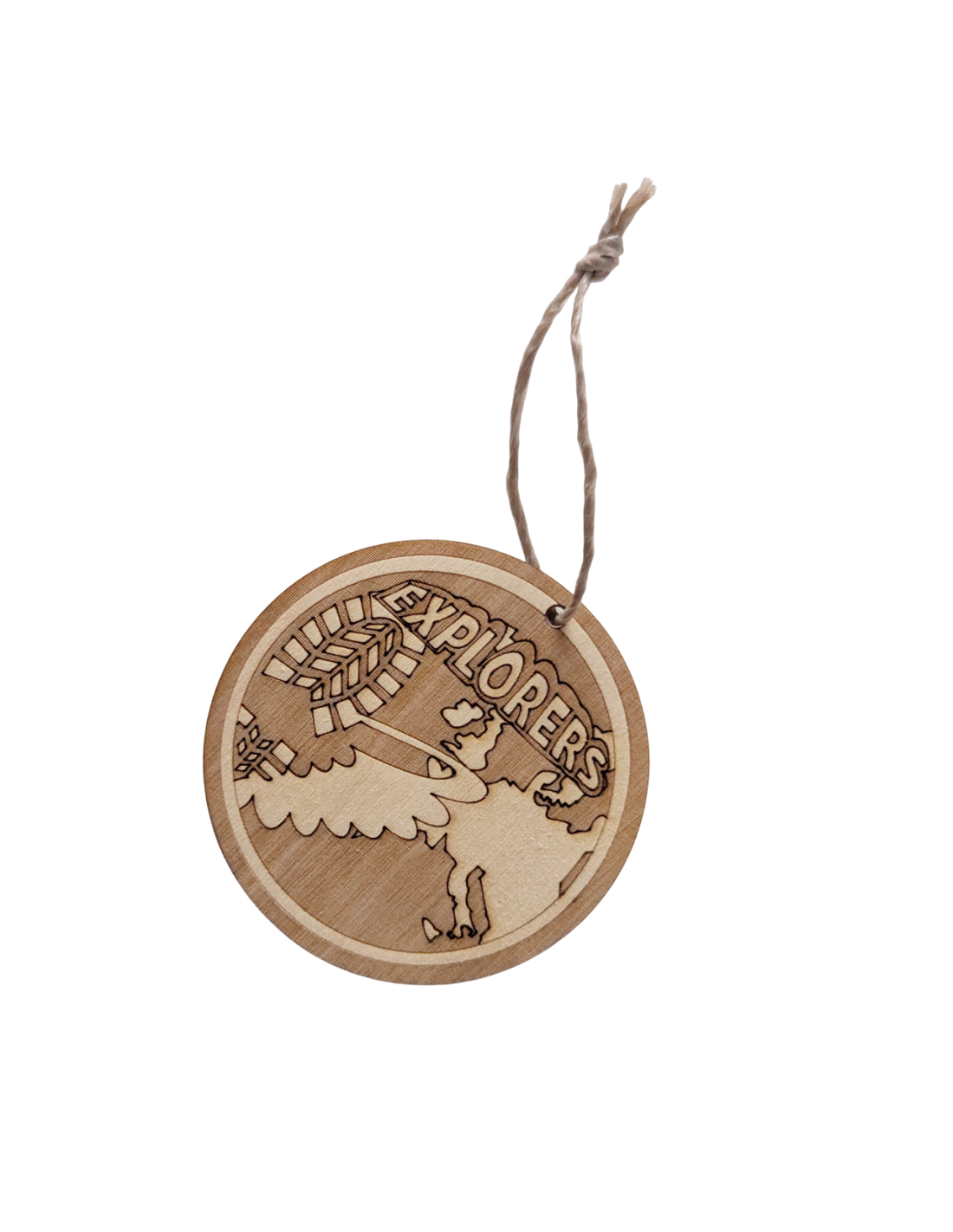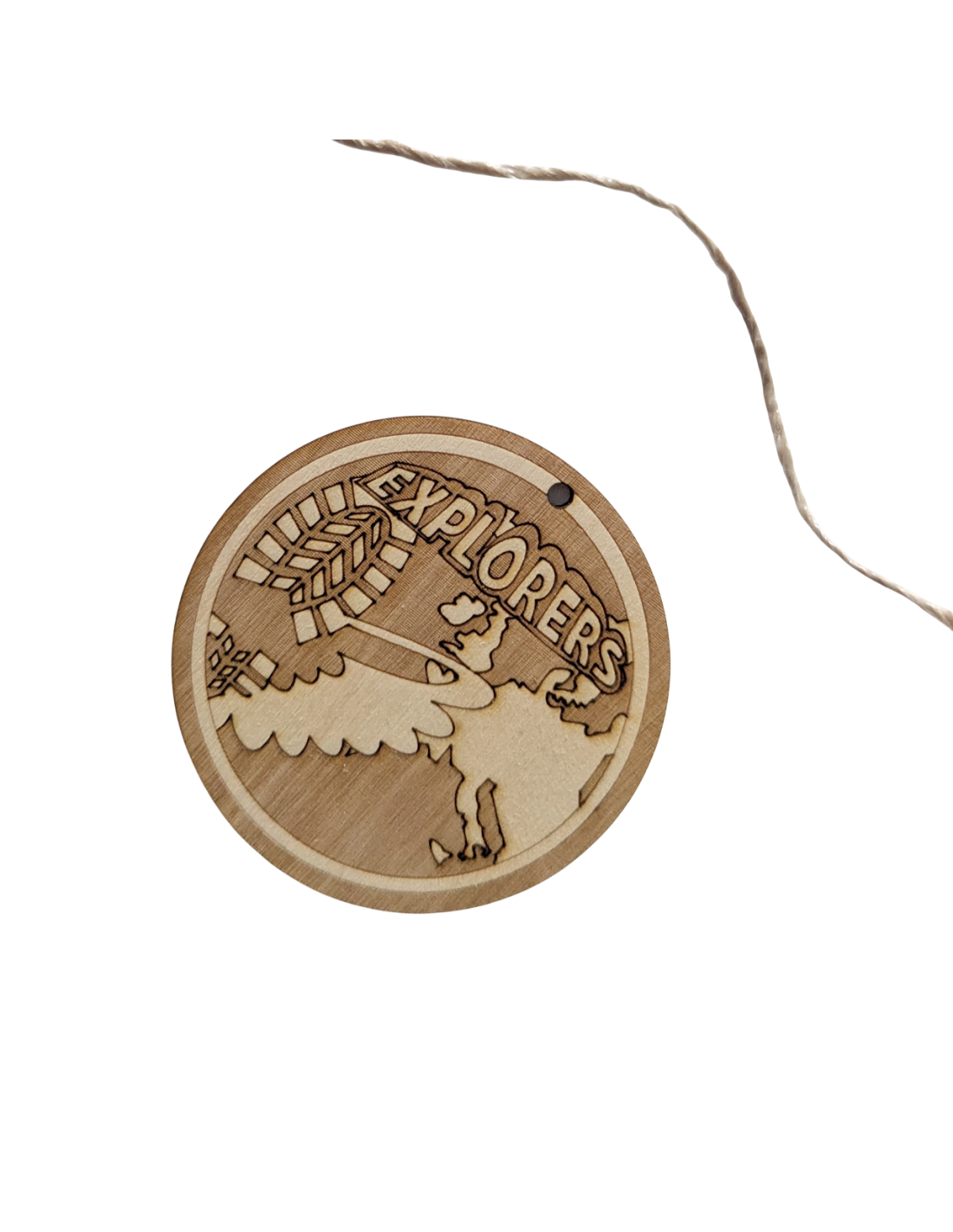 Een leuke houten scouting hanger in de vorm van een explorers insigne van ons eigen Houtspel merk