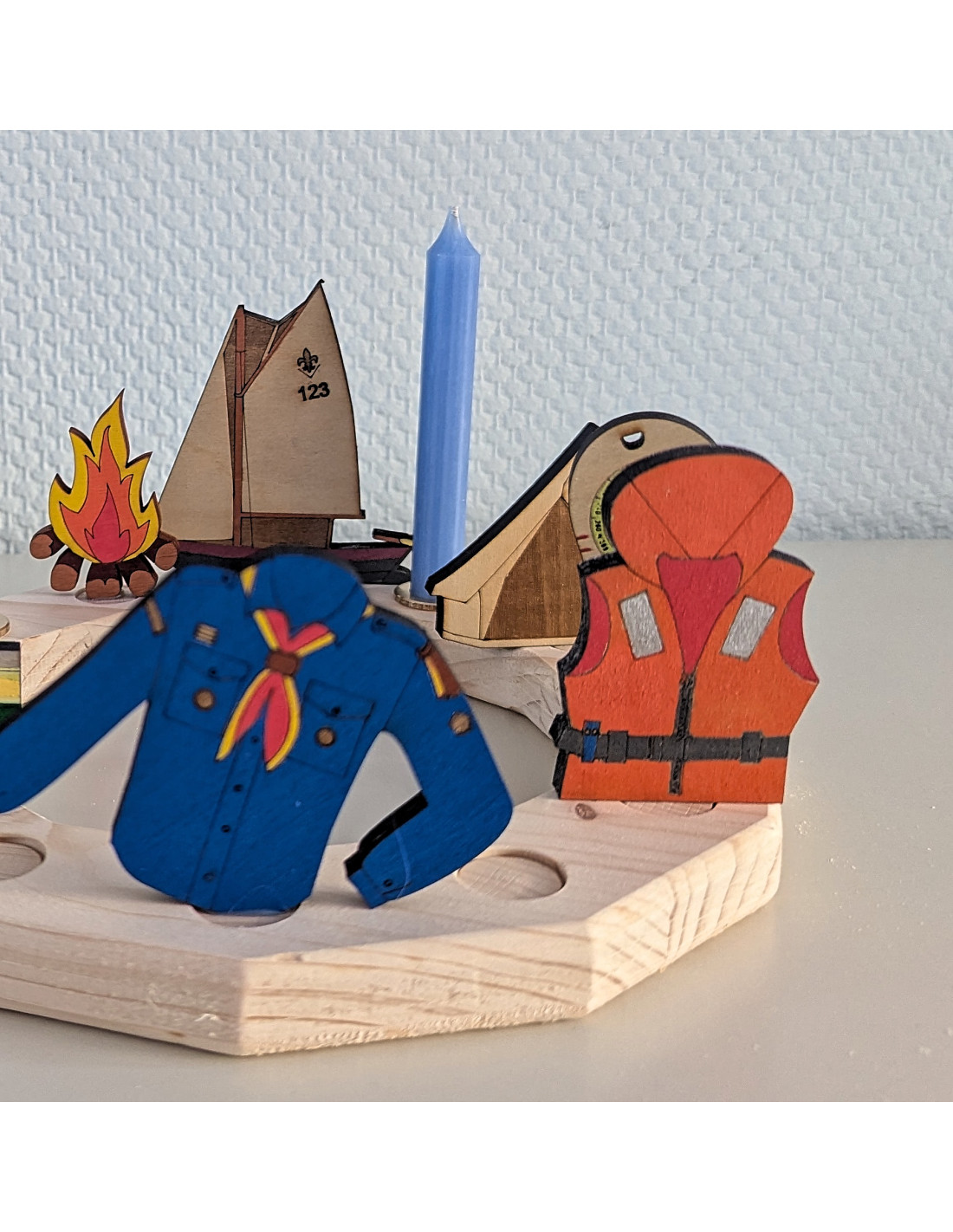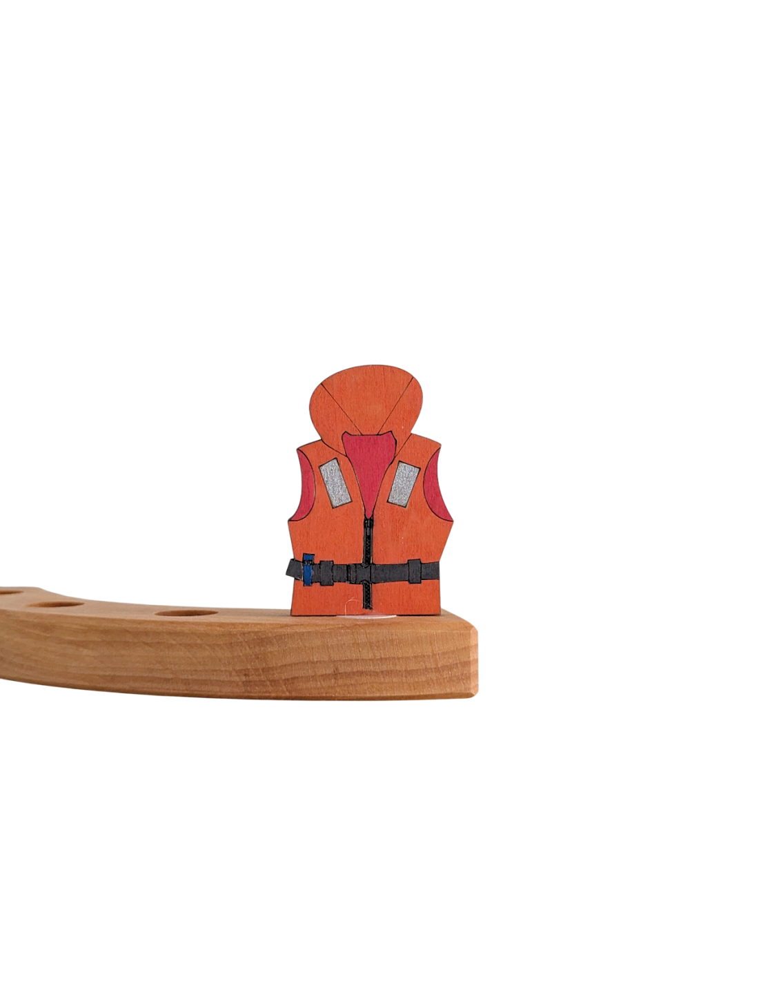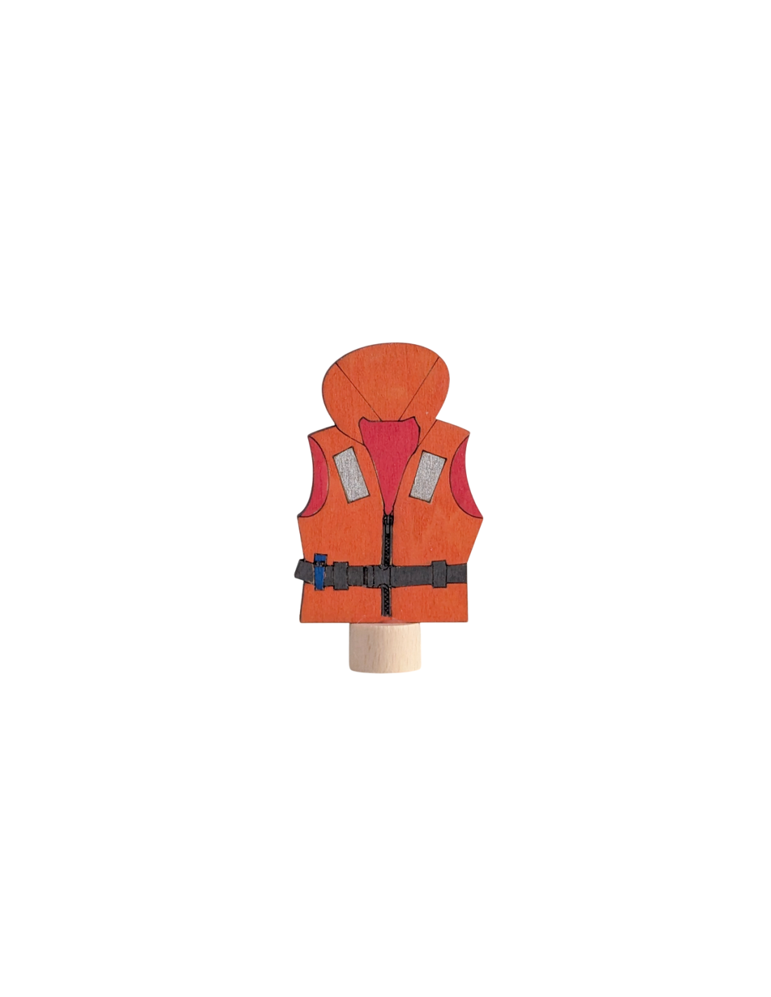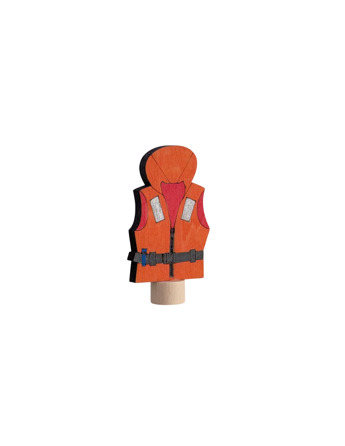 Houten steker voor in je verjaardagsring in de vorm van een zwemvest van ons eigen Houtspel merk