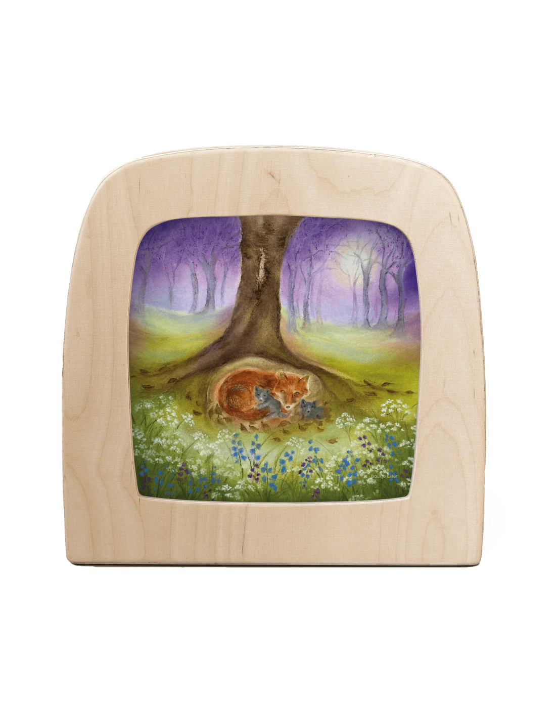 Prachtige wisselplaat voor in de seizoenslamp met een vossenfamilie in hun hol van Baukje Exler