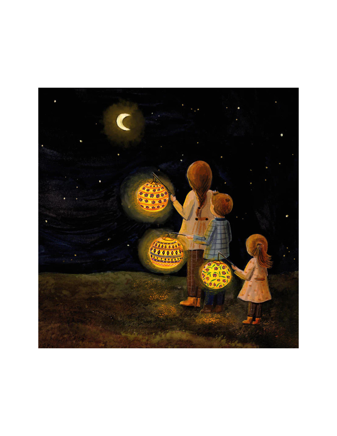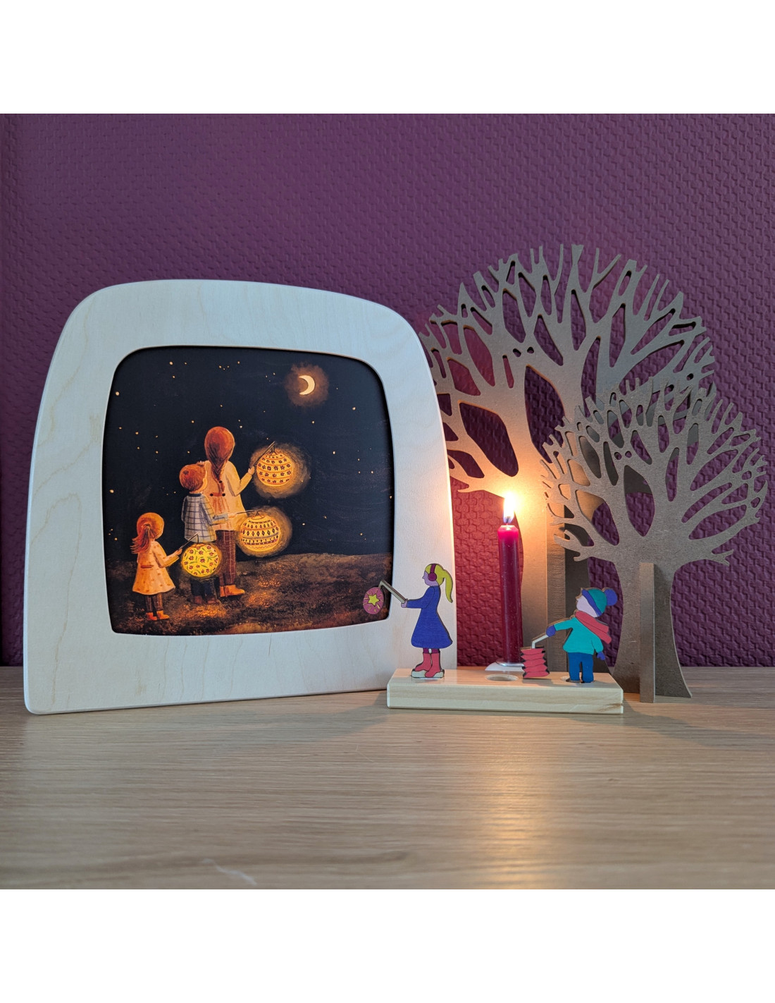 Sfeervolle wisselplaat voor in de seizoenslamp met kinderen met een lampion van Esther Bennink