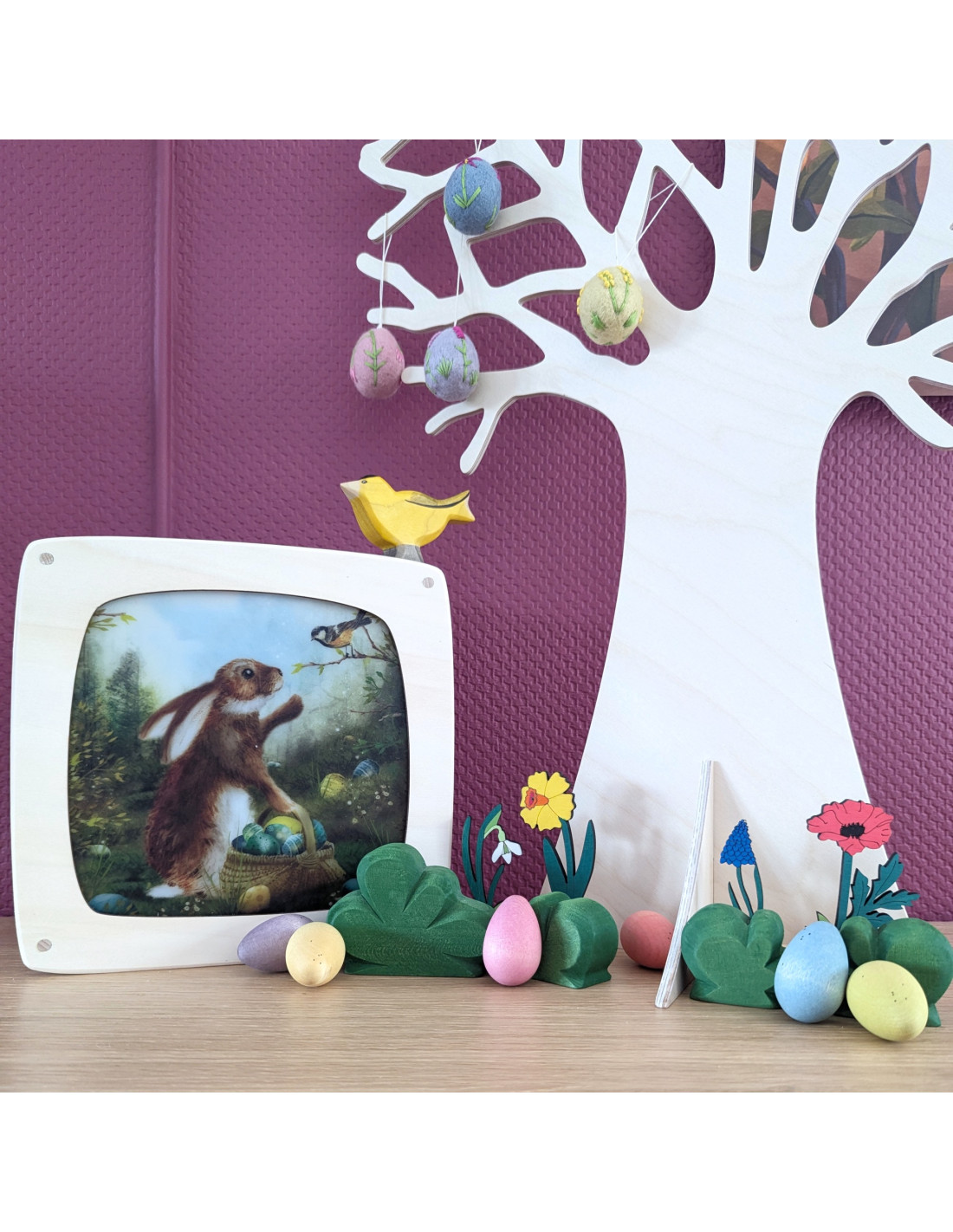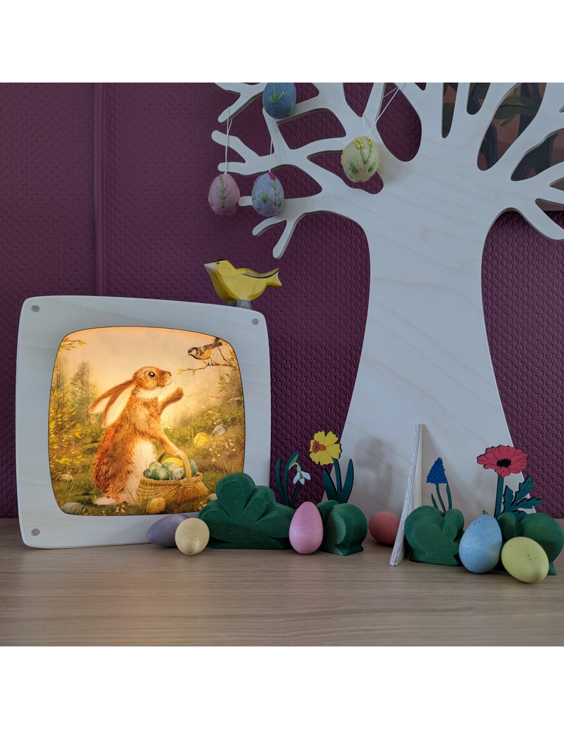 Wil jij je (kinder) kamer of seizoenstafel pasen klaar maken? Dan kan deze super leuke wisselplaat met een paashaas die eieren verstopt niet ontbreken. De plaat is gemaakt van lichtdoorlatende kunststof waar de afbeelding op is gedrukt waardoor de kleuren en structuur van de afbeelding prachtig uitkomen.