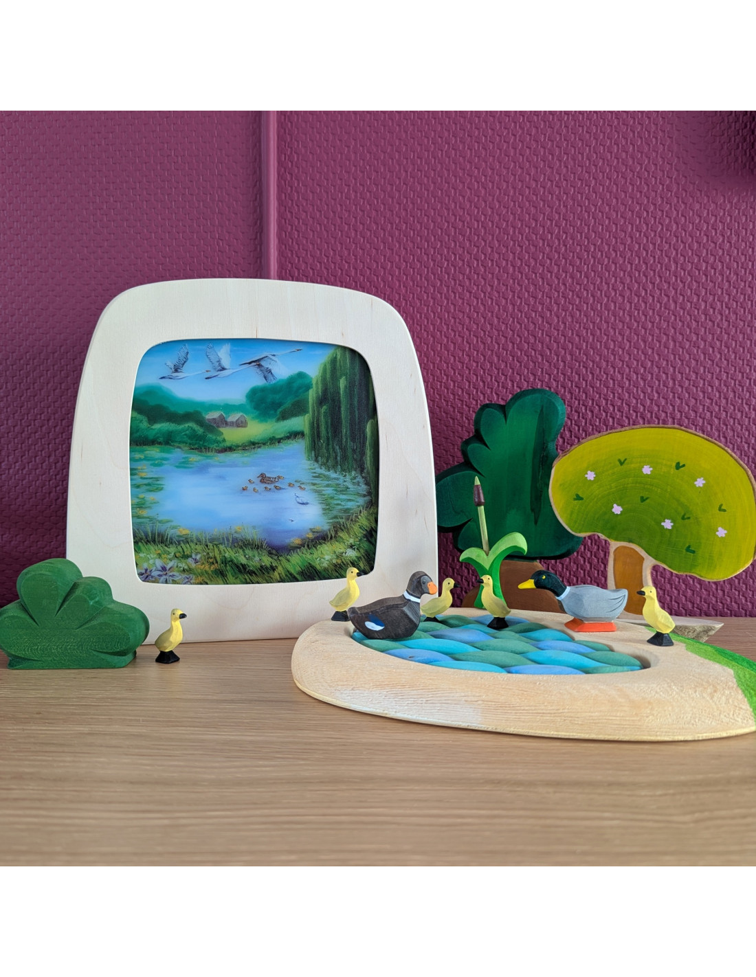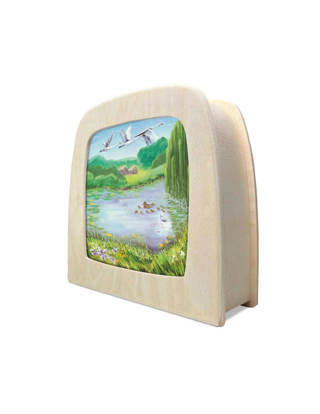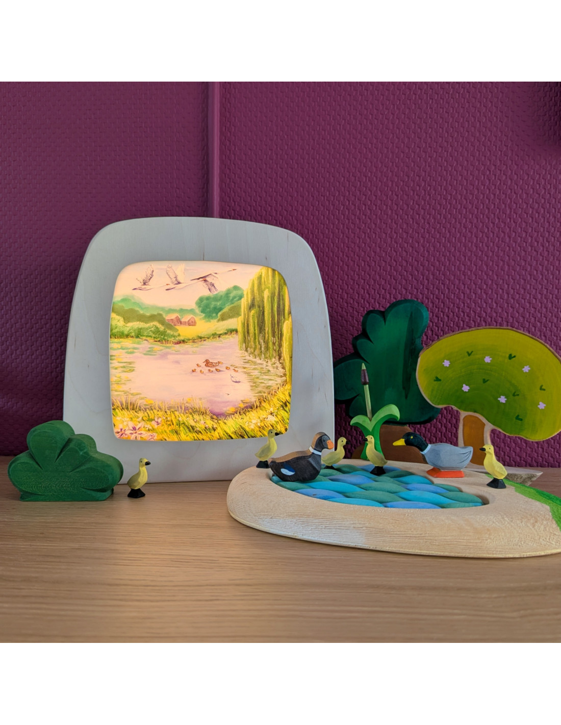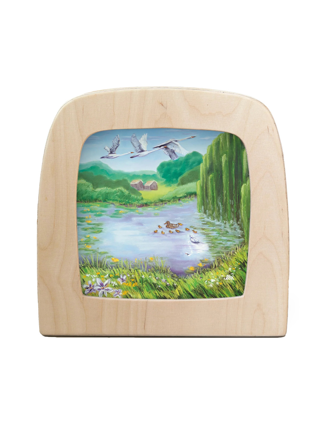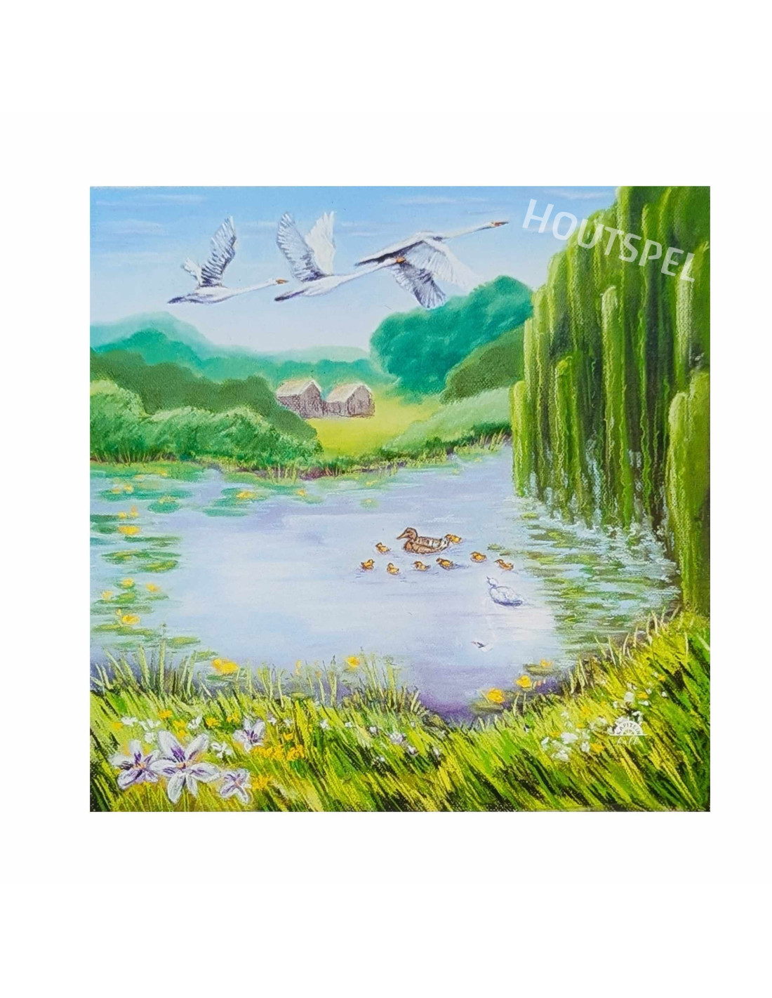 Een super leuke wisselplaat voor in de seizoenslamp met een vijver met een eend en haar kroost van Kapitein Kalk