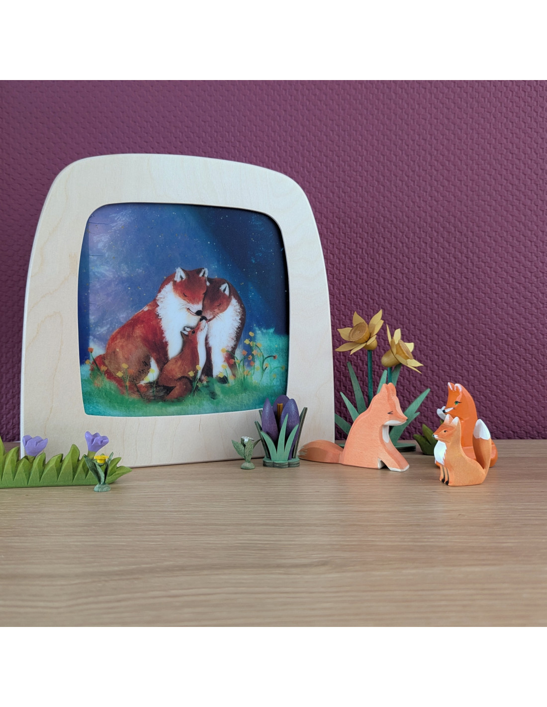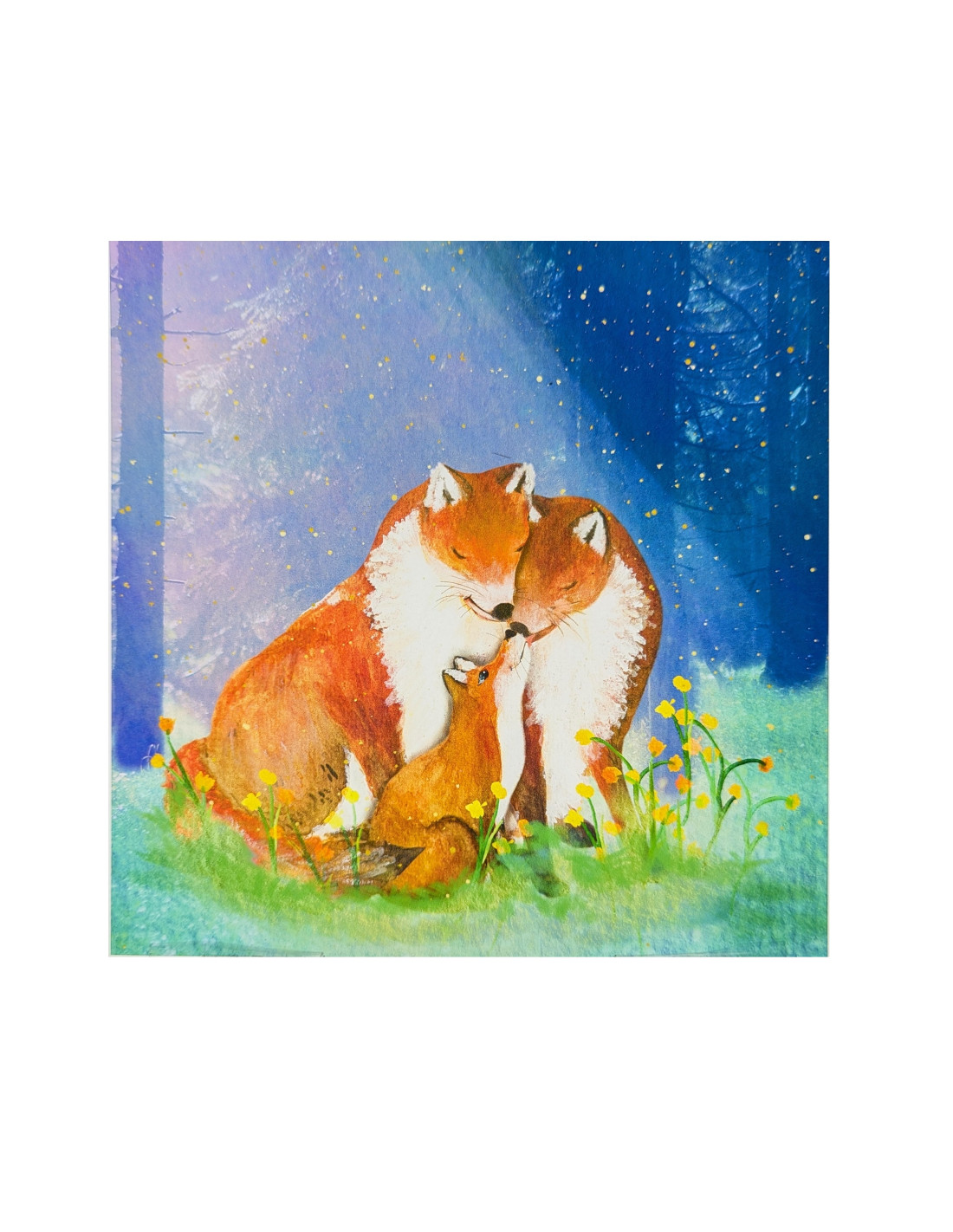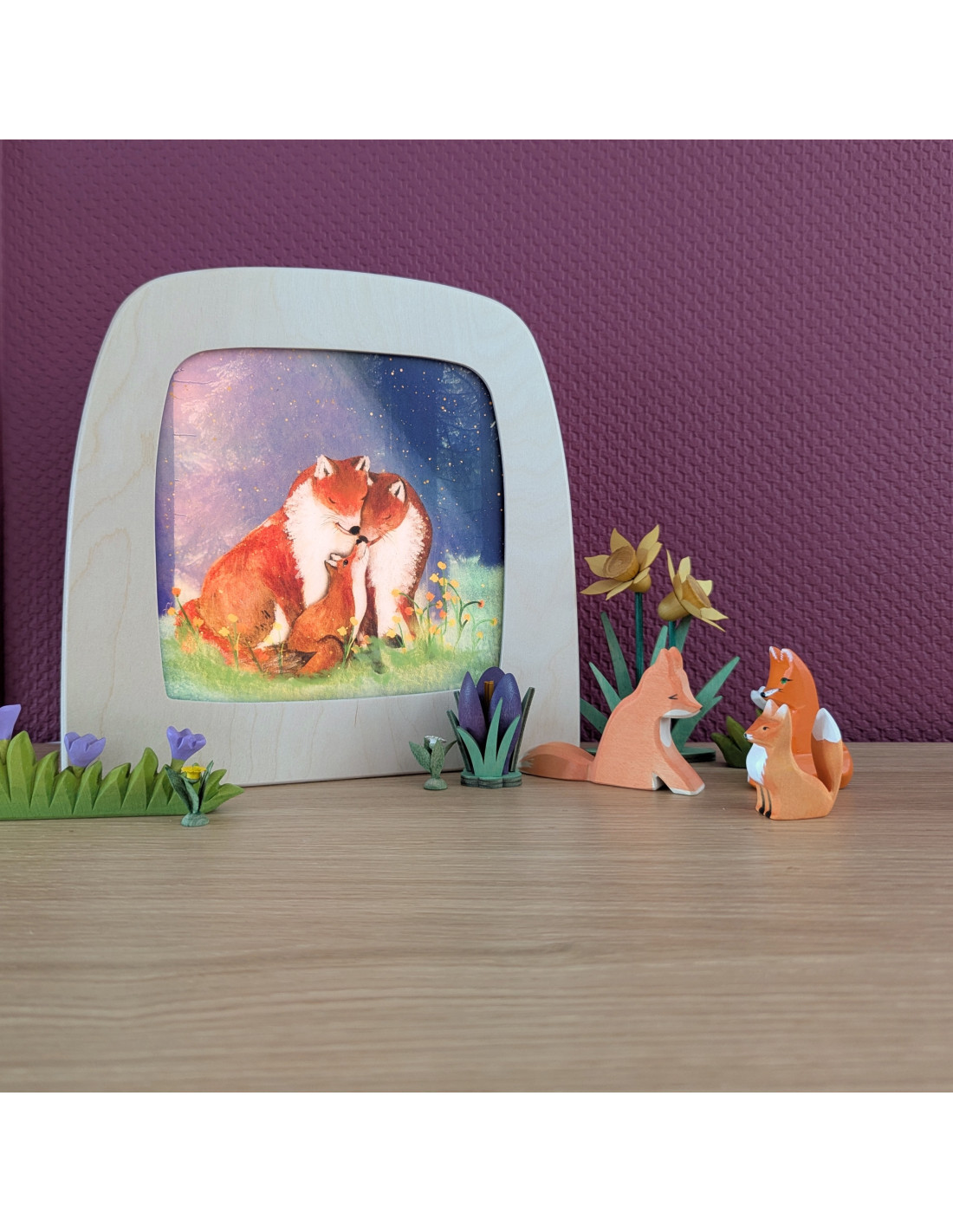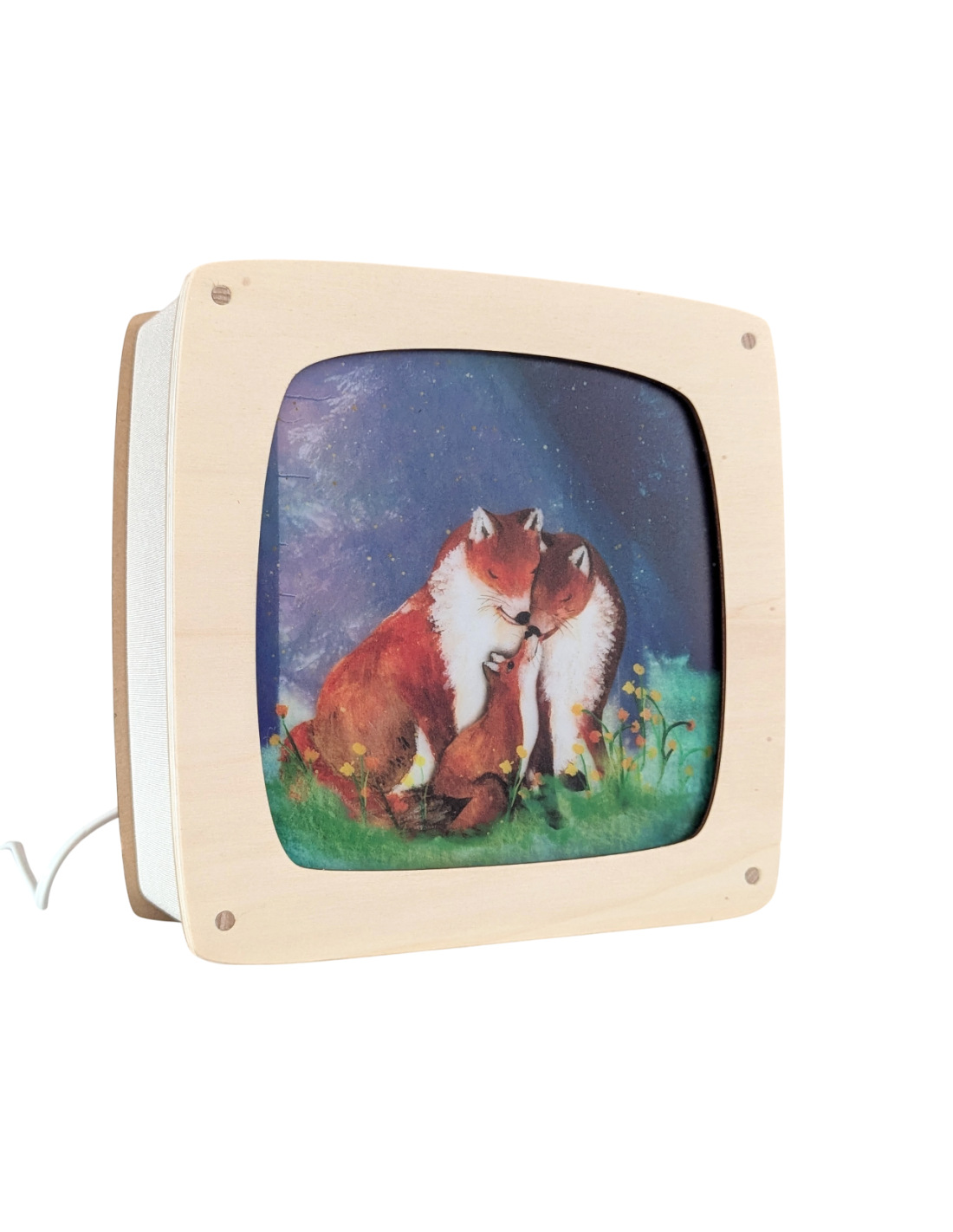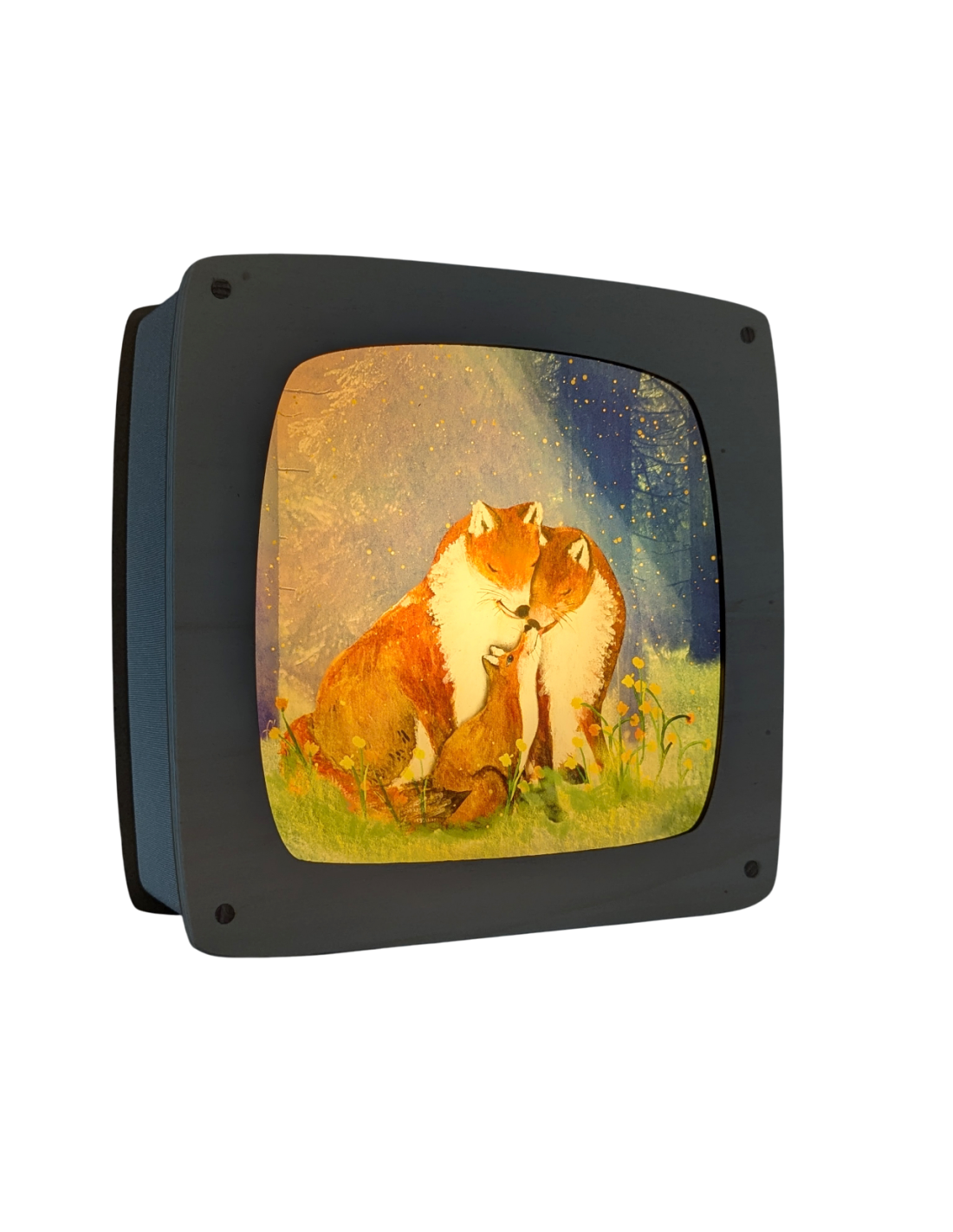 Lieve plaat voor in de seizoenslamp met een familie vos welke aan het knuffelen is van Lotte Drouen