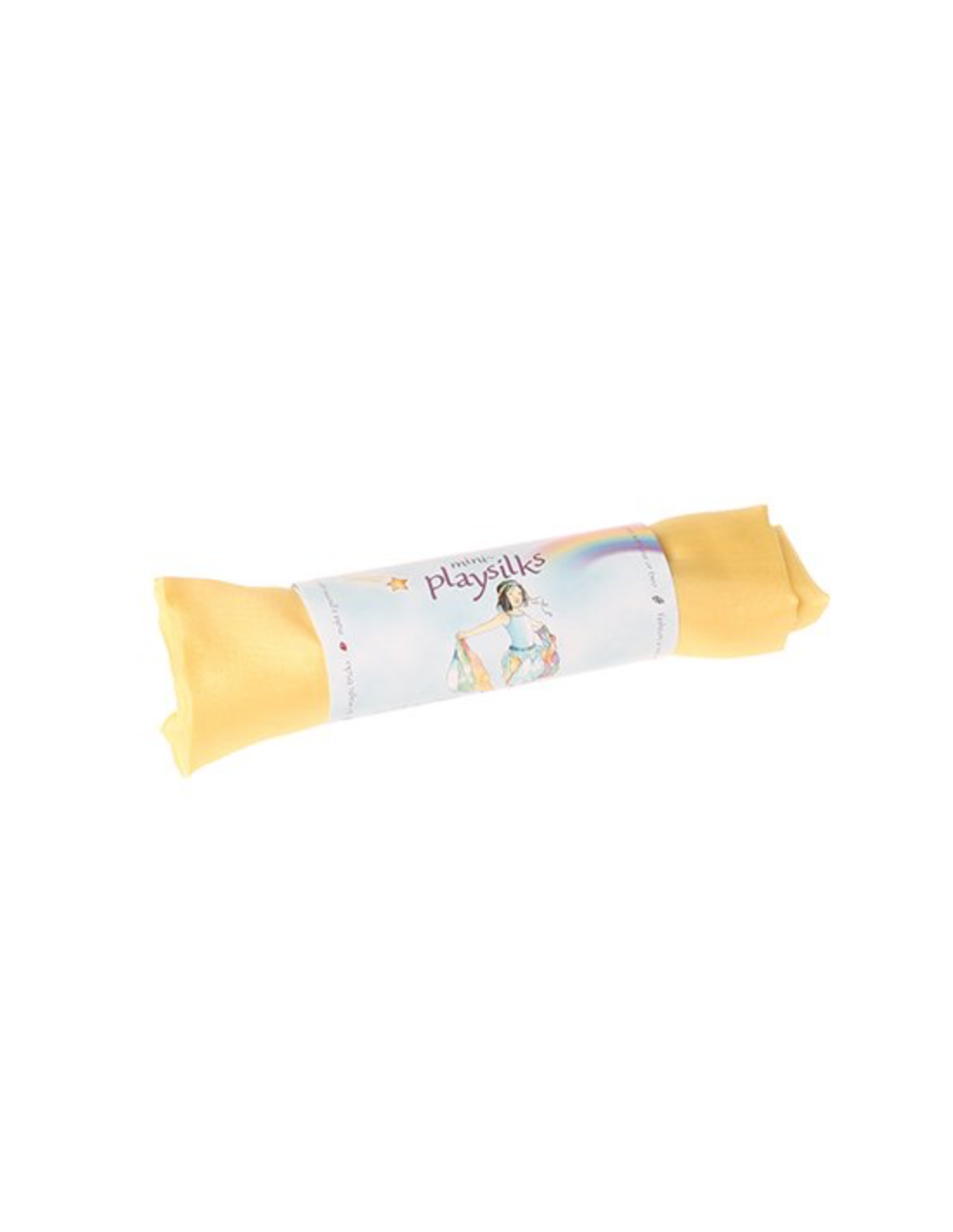 Een prachtige mini zijden speeldoek van Sarah's Silks in de kleur lichtgeel