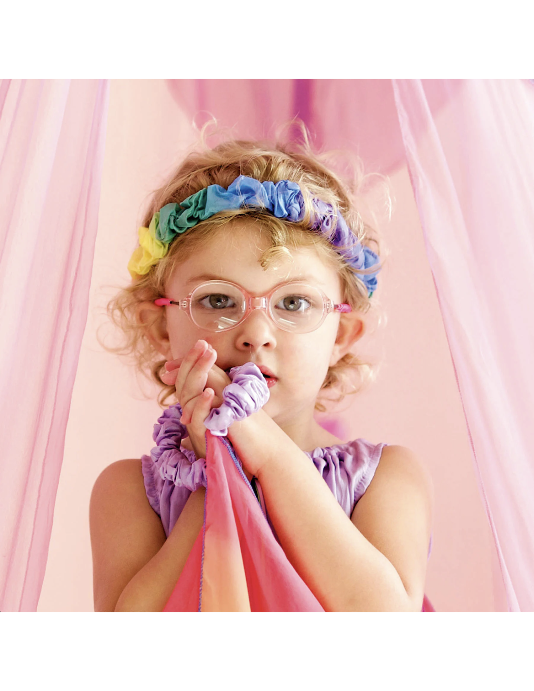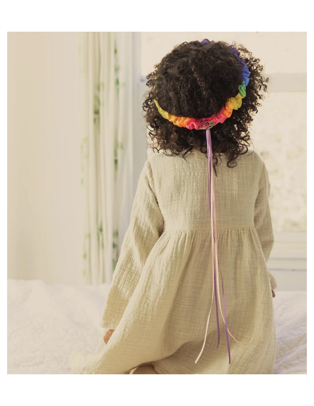 Prachtige bloemenkrans van zijde in regenboogkleuren van Sarah's Silks